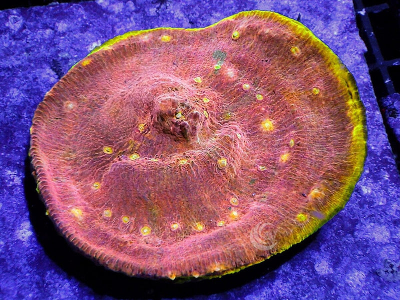 This Gold Miner Chalice is grown on our farm and is a Dr. Mac Stash coral. We have a wide variety of corals all grown in our facility.