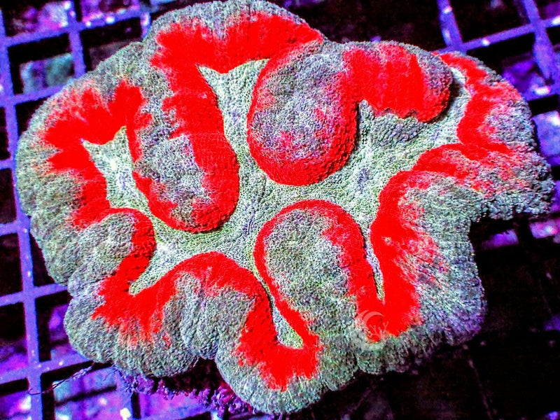 Symphyllia corals (commonly called closed brain corals) are large-polyp stony (LPS) corals known for their broad, fleshy tissue and meandering valleys that form a brain-like pattern across their surface. They often display rich, vibrant colors such as reds, greens, pinks, and multi-tone combinations with contrasting centers, making them a striking focal point in reef aquariums. Their thick tissue can expand significantly, giving them a soft, inflated appearance that adds movement and depth to the tank.