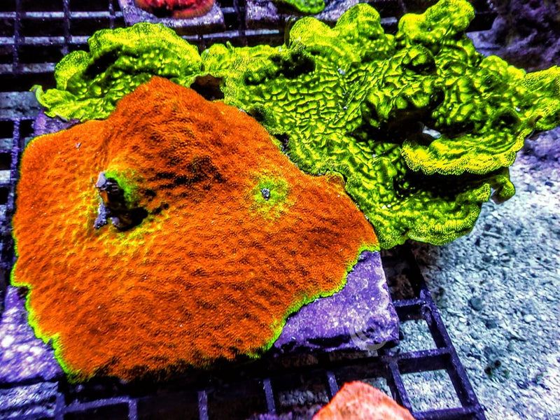 This Sun King Psammacora Combo Neon Scrolling Psammacora is "WYSIWYG" - What you see is what you get - so this one is yours! This is grown on our farm and is a Dr. Mac Stash coral. We have a wide variety of Brain corals all grown in our facility.