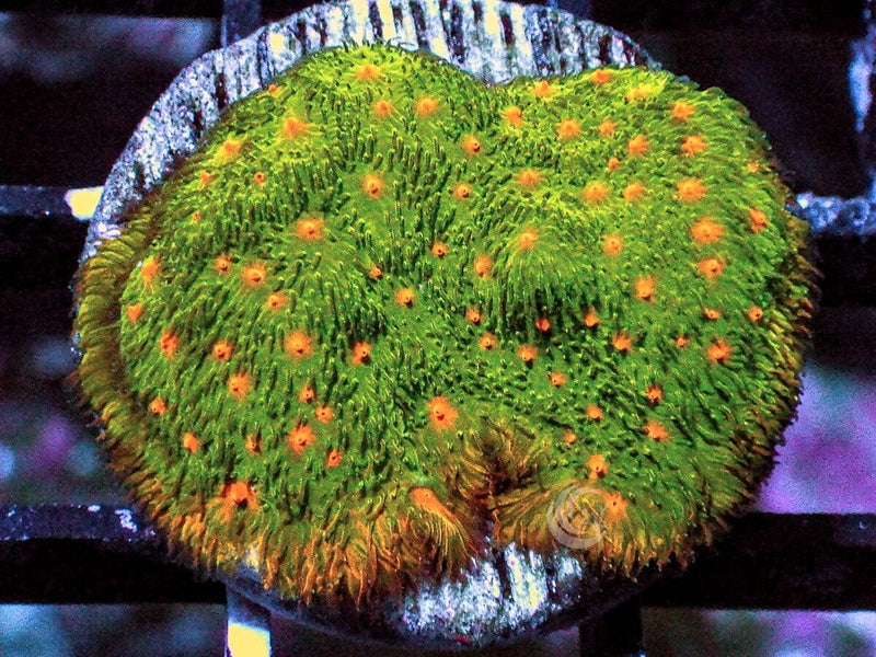This Pumpkin Patch Psammacora is "WYSIWYG" - What you see is what you get - so this one is yours! This is grown on our farm and is a Dr. Mac Stash Weekly Pick. We have a wide variety of corals all grown in our facility.
