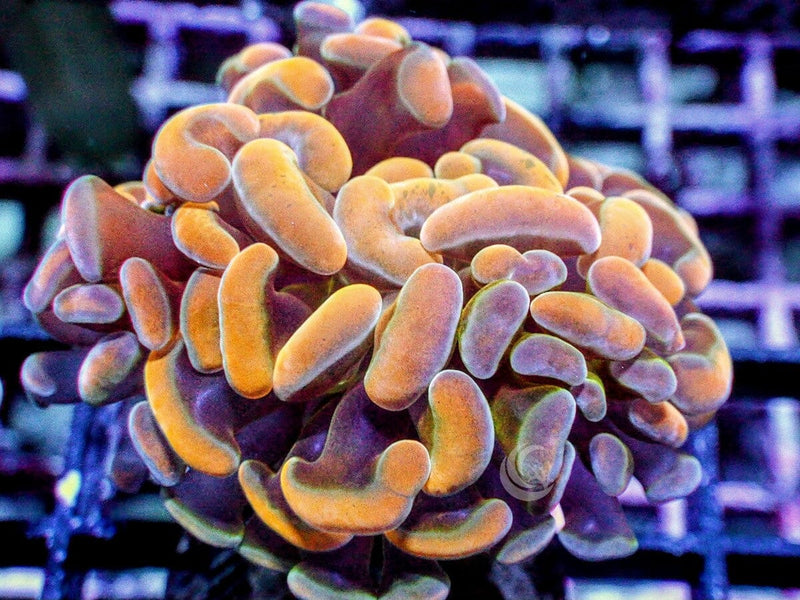 Hammer corals are easy to keep and do best with moderate levels of mostly blue LED lighting. They require gentle water flow to cause slight swaying of their tentacles. Stronger direct flow will damage their delicate tissue. Their tentacles extend many inches beyond their honeycomb type hard calcified skeleton. Hammers are aggressive and extend sweeper tentacles that will sting nearby corals. To prevent damage to other hard corals give Hammer corals several inches of space. Direct feeding is not necessary, but they will grab and eat any food that contacts their tentacles. Their tentacles retract at night.