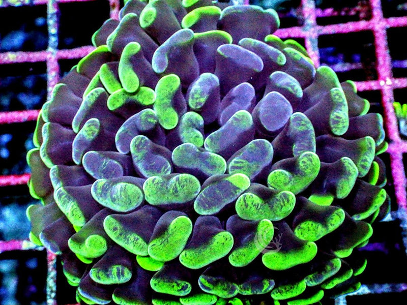 Hammer corals are easy to keep and do best with moderate levels of mostly blue LED lighting. They require gentle water flow to cause slight swaying of their tentacles. Stronger direct flow will damage their delicate tissue. Their tentacles extend many inches beyond their honeycomb type hard calcified skeleton. Hammers are aggressive and extend sweeper tentacles that will sting nearby corals. To prevent damage to other hard corals give Hammer corals several inches of space. Direct feeding is not necessary, but they will grab and eat any food that contacts their tentacles. Their tentacles retract at night.