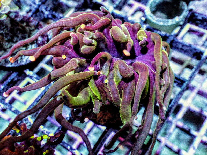 Torch corals are easy to keep and do best with moderate levels of mostly blue LED lighting. They require moderate water flow to cause rapid swaying of their tentacles. Stronger direct flow will damage their delicate tissue. Their tentacles extend many inches beyond their honeycomb type hard calcified skeleton. Torches are aggressive and extend sweeper tentacles that will sting nearby corals. To prevent damage to other hard corals give Torch corals several inches of space. Direct feeding is not necessary, but they will grab and eat any food that contacts their tentacles. Their tentacles retract at night.