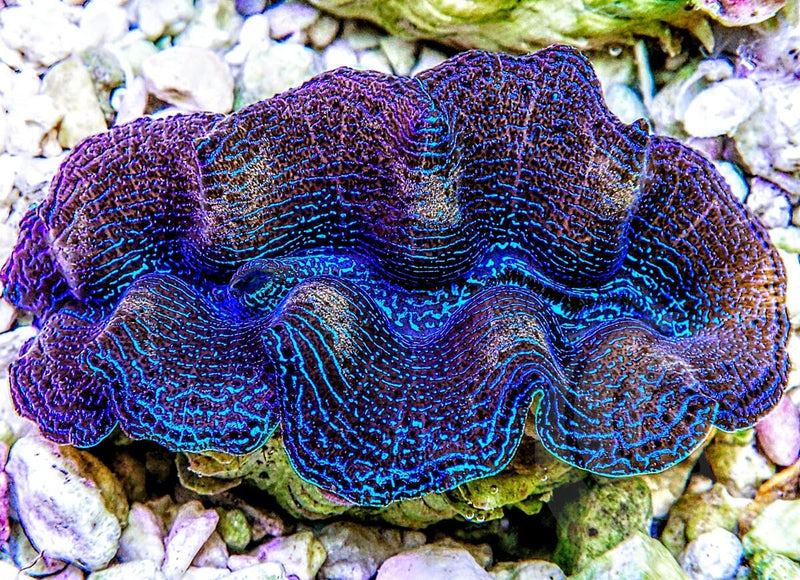 Please note that clam coloration naturally varies depending upon the angle of viewing. This is an optical effect and not an actual change in color. Our clams are photographed from the top down. We use a digital camera to photograph our clams. Certain colors are difficult for the camera to capture, such as variations of blue. We try to represent our clams as accurately as possible given the limitations of digital technology. Clams may look different in your tank due to lighting and angle.