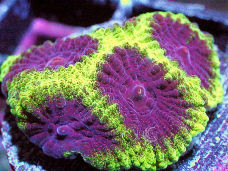 Brain corals include a rainbow of colors. For example, there are dozens of color varieties of Favias from Flaming red to glowing green.