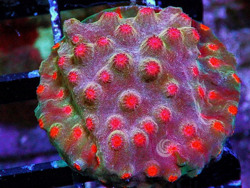 This Red Polyp Cyphastrea is "WYSIWYG" - What you see is what you get - so this one is yours! Grown at our facility and part of Dr. Mac's Stash! Add this patch of color to your tank today!