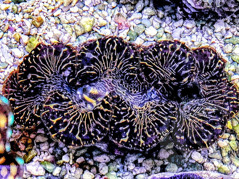 Please note that clam coloration naturally varies depending upon the angle of viewing. This is an optical effect and not an actual change in color. Our clams are photographed from the top down. We use a digital camera to photograph our clams. Certain colors are difficult for the camera to capture, such as variations of blue. We try to represent our clams as accurately as possible given the limitations of digital technology. Clams may look different in your tank due to lighting and angle.