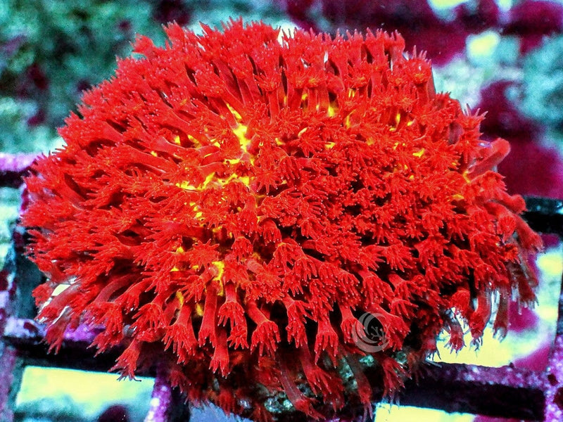 This Burning Banana Stylocoeniella is"WYSIWYG" - What you see is what you get - so this one is yours! This is grown on our farm and is a Dr. Mac Stash coral. We have a wide variety of corals all grown in our facility.