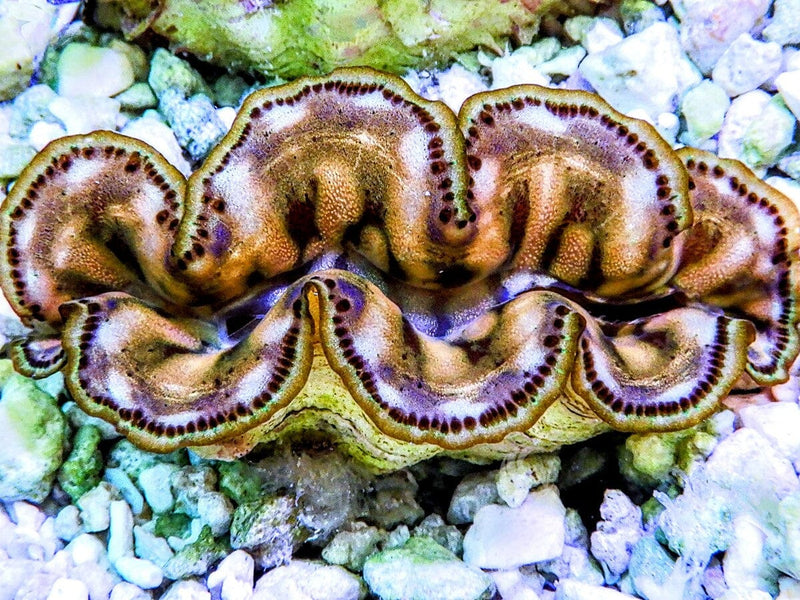 Please note that clam coloration naturally varies depending upon the angle of viewing. This is an optical effect and not an actual change in color. Our clams are photographed from the top down. We use a digital camera to photograph our clams. Certain colors are difficult for the camera to capture, such as variations of blue. We try to represent our clams as accurately as possible given the limitations of digital technology. Clams may look different in your tank due to lighting and angle.