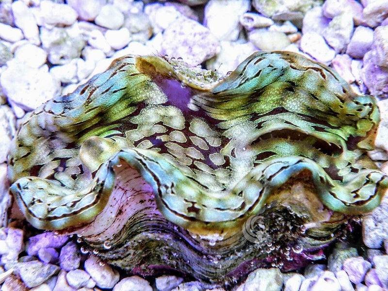 Please note that clam coloration naturally varies depending upon the angle of viewing. This is an optical effect and not an actual change in color. Our clams are photographed from the top down. We use a digital camera to photograph our clams. Certain colors are difficult for the camera to capture, such as variations of blue. We try to represent our clams as accurately as possible given the limitations of digital technology. Clams may look different in your tank due to lighting and angle.