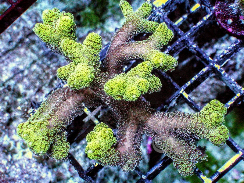 This Green Tip Fuzzy Bird's Nest is "WYSIWYG" - What you see is what you get - so this one is yours! This is grown on our farm and is a Dr. Mac Stash coral. We have a wide variety of corals all grown in our facility.