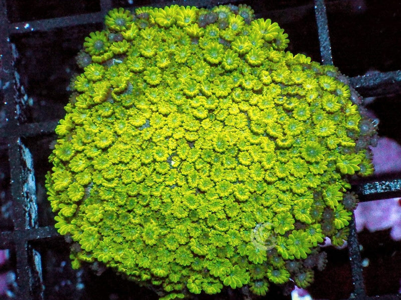 This Lime Short Polyp Goniopora is "WYSIWYG" - What you see is what you get - so this one is yours! This is grown on our farm and is a Dr. Mac Stash coral. We have a wide variety of corals all grown in our facility.