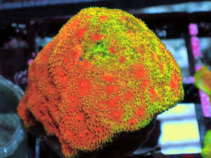 This Sun King Psammacora is"WYSIWYG" - What you see is what you get - so this one is yours! This is grown on our farm and is a Dr. Mac Stash coral. We have a wide variety of corals all grown in our facility.