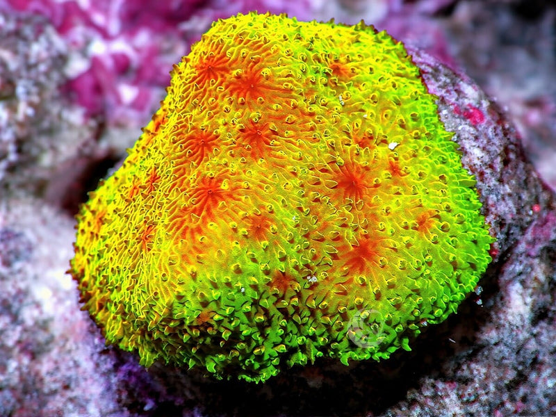 This Sun King Psammacora is "WYSIWYG" - What you see is what you get - so this one is yours! This is grown on our farm and is a Dr. Mac Stash coral. We have a wide variety of corals all grown in our facility.