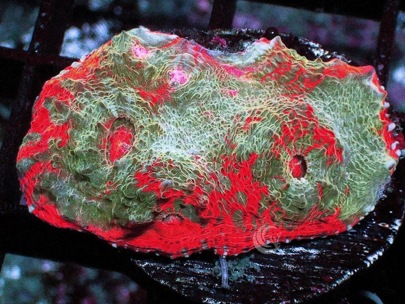 This Teal Swirl Orange Chalice is"WYSIWYG" - What you see is what you get - so this one is yours! This is grown on our farm and is a Dr. Mac Stash coral. We have a wide variety of corals all grown in our facility.
