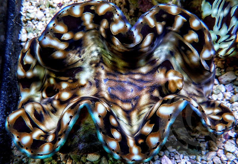 Please note that clam coloration naturally varies depending upon the angle of viewing. This is an optical effect and not an actual change in color. Our clams are photographed from the top down. We use a digital camera to photograph our clams. Certain colors are difficult for the camera to capture, such as variations of blue. We try to represent our clams as accurately as possible given the limitations of digital technology. Clams may look different in your tank due to lighting and angle.