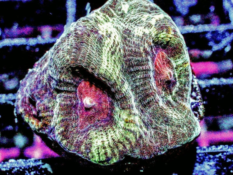 Brain corals include a rainbow of colors. For example, there are dozens of color varieties of Favias from Flaming red to glowing green.