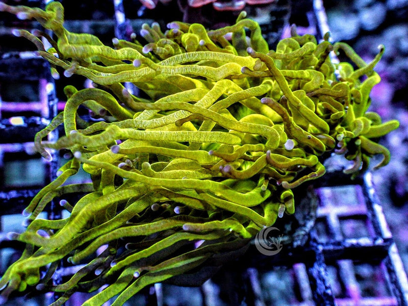 Torch corals are easy to keep and do best with moderate levels of mostly blue LED lighting. They require moderate water flow to cause rapid swaying of their tentacles. Stronger direct flow will damage their delicate tissue. Their tentacles extend many inches beyond their honeycomb type hard calcified skeleton. Torches are aggressive and extend sweeper tentacles that will sting nearby corals. To prevent damage to other hard corals give Torch corals several inches of space. Direct feeding is not necessary, but they will grab and eat any food that contacts their tentacles. Their tentacles retract at night.