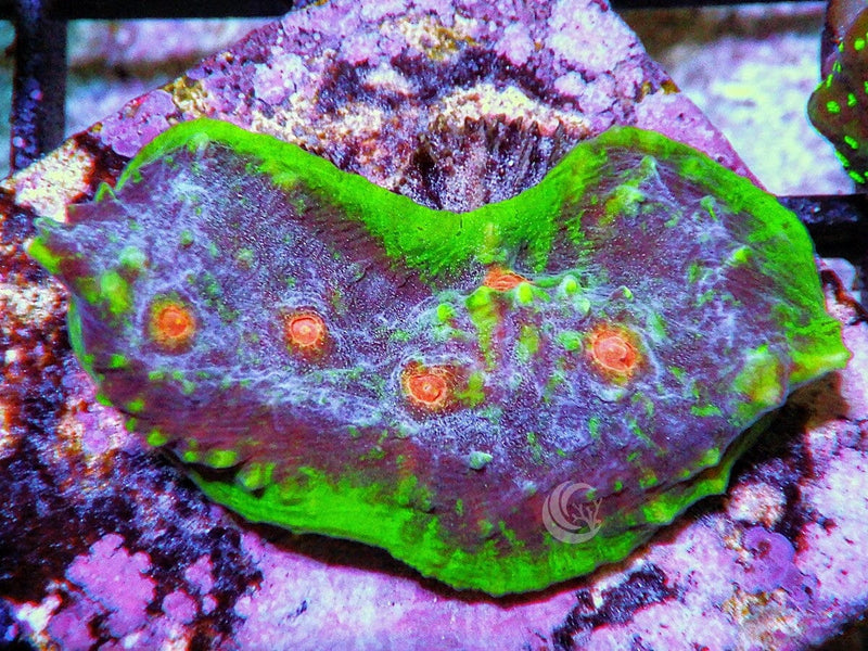 This Watermelon Chalice is"WYSIWYG" - What you see is what you get - so this one is yours! This is grown on our farm and is a Dr. Mac Stash coral. We have a wide variety of corals all grown in our facility